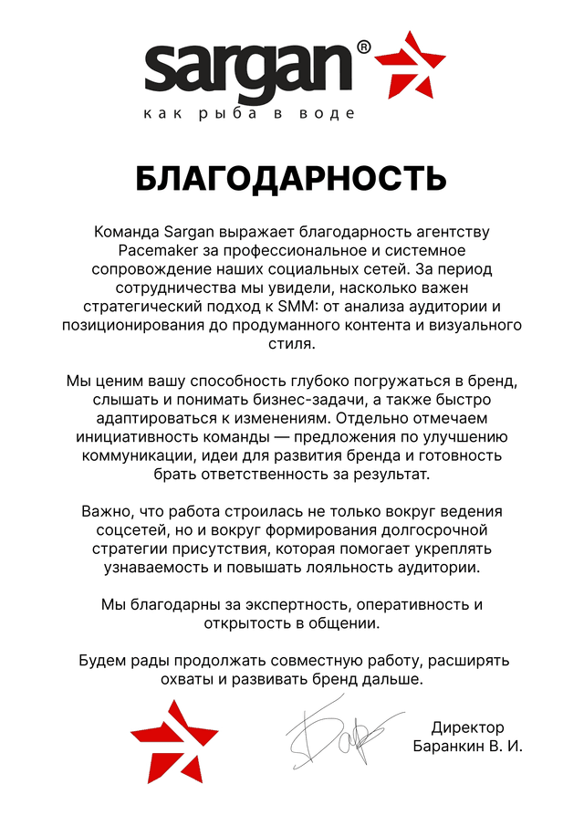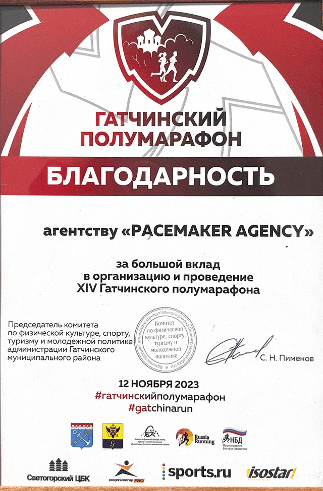 Хотим поблагодарить агентство Pacemaker за плодотворную совместную работу. Нам удалось провести мероприятие на рекордное количество человек за последние четыре года. Диана и ее команда не только привлекли огромное количество участников, но и партнеров, которые дали призы и продукцию в стартовые пакеты. С Дианой мы сотрудничаем уже на протяжении полугода и за это время наши старты стали массовее и популярнее.